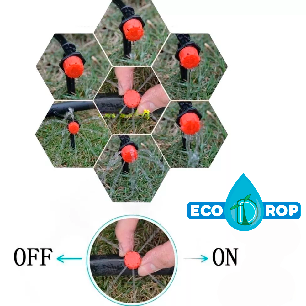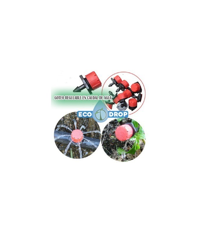Los goteros regulables son ideales para instalaciones de riego de árboles, arbustos, macetas y canteros. Pudiendo regular el aporte de caudal de agua es ideal para combinar el riego en distintos tipos de plantas.