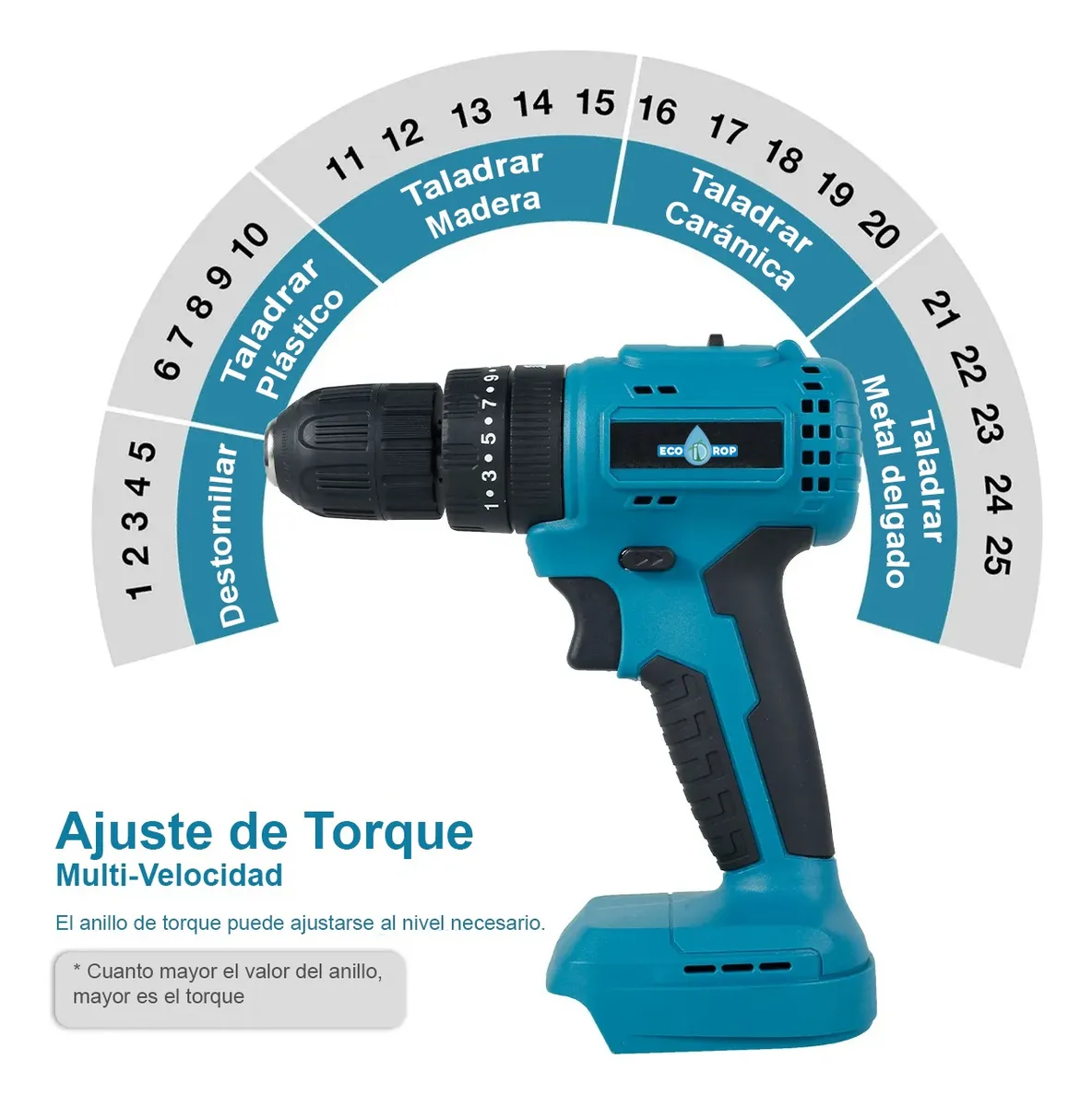 1 x Taladro Ecodrop 10mm / Torque Máx: 25